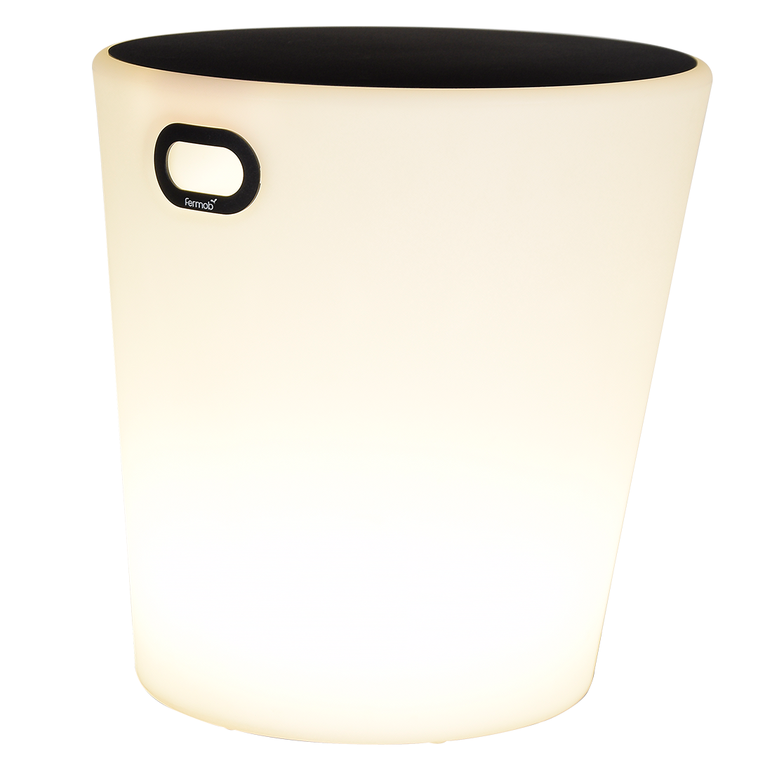 FERMOB` Leuchthocker Inouï ist eine echte Option! Dank seiner Höhe von 44 cm kann er sowohl als Hocker an einem Gartentisch oder als Beistelltisch für den Wohnraum im Garten genutzt werden.