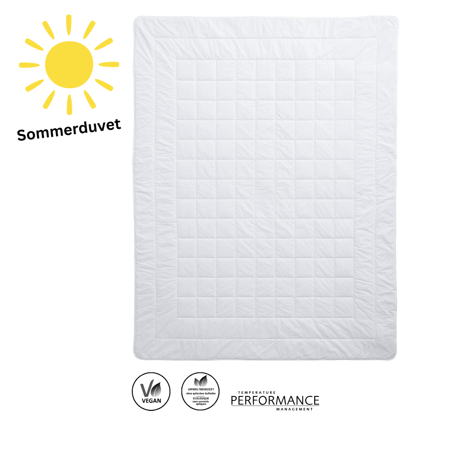 Geeignet als Sommer-Duvet, als Duvet für geheizte Wasserbetten, für Schläfer mit sehr geringem Wärmebedürfnis und/oder für Schläfer in stark geheizten Schlafzimmern.