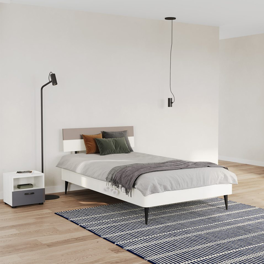 Das Bett ist für eine Matratzengrösse von 90 x 200 cm (weitere erhältliche Standardgrössen: 120/140/160 und 180 x 200 cm) ausgerichtet.