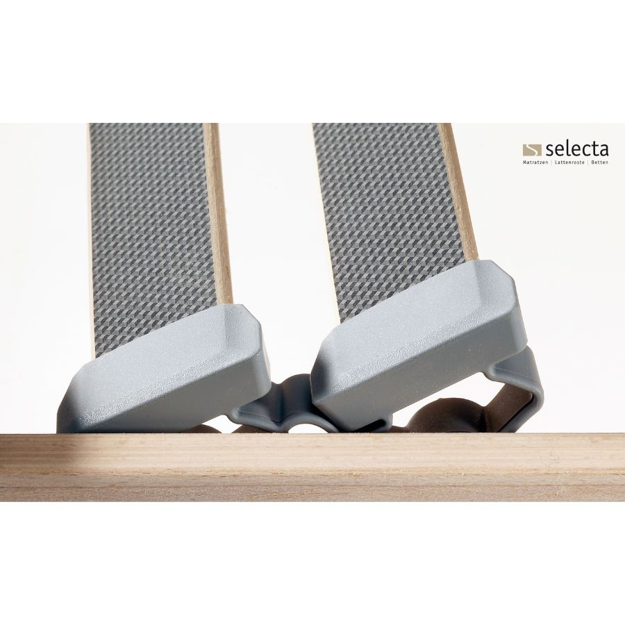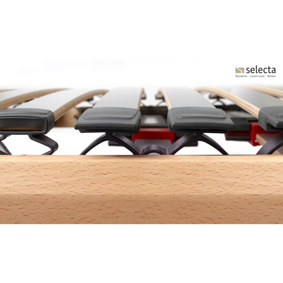 Basis-Lattenrost, komplett metallfrei, nicht einstellbar. Dieser Lattenrost verbindet hohen Liegekomfort und solide Langlebigkeit. Seine wirkungsvolle Schulterkomfortzone erlaubt ein angenehmes Einsinken der Schulterpartie. Die notwendige Unterstützung im Bereich der Lordose bieten die in der Festigkeit regulierbaren Doppelleisten der Mittelzone. Sorgfältige Verarbeitung und ausgesuchte Materialien, z.B. hochwertiges Buche-Massivholz, machen den FR7 besonders stabil und leistungsfähig.