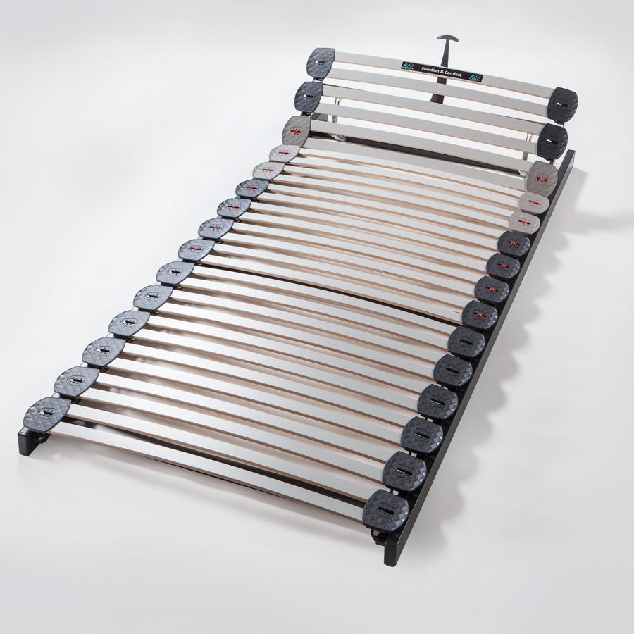 HASENA Lattenrost Ultrafree mit 5-facher manueller Kopfhochlagerung. Dieser Lattenrost bietet eine solide Basis für grenzenlosen Schlafkomfort. An 7 Lattenpaaren bei Schulter- und Gesässzone kann die Festigkeit (soft - mittel - fest) eingestellt werden.