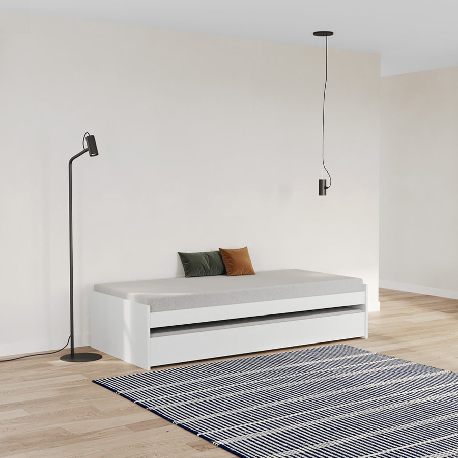 Platzsparend: Bei Nichtgebrauch lässt sich das zweite Bett einfach unter das Hauptbett schieben.