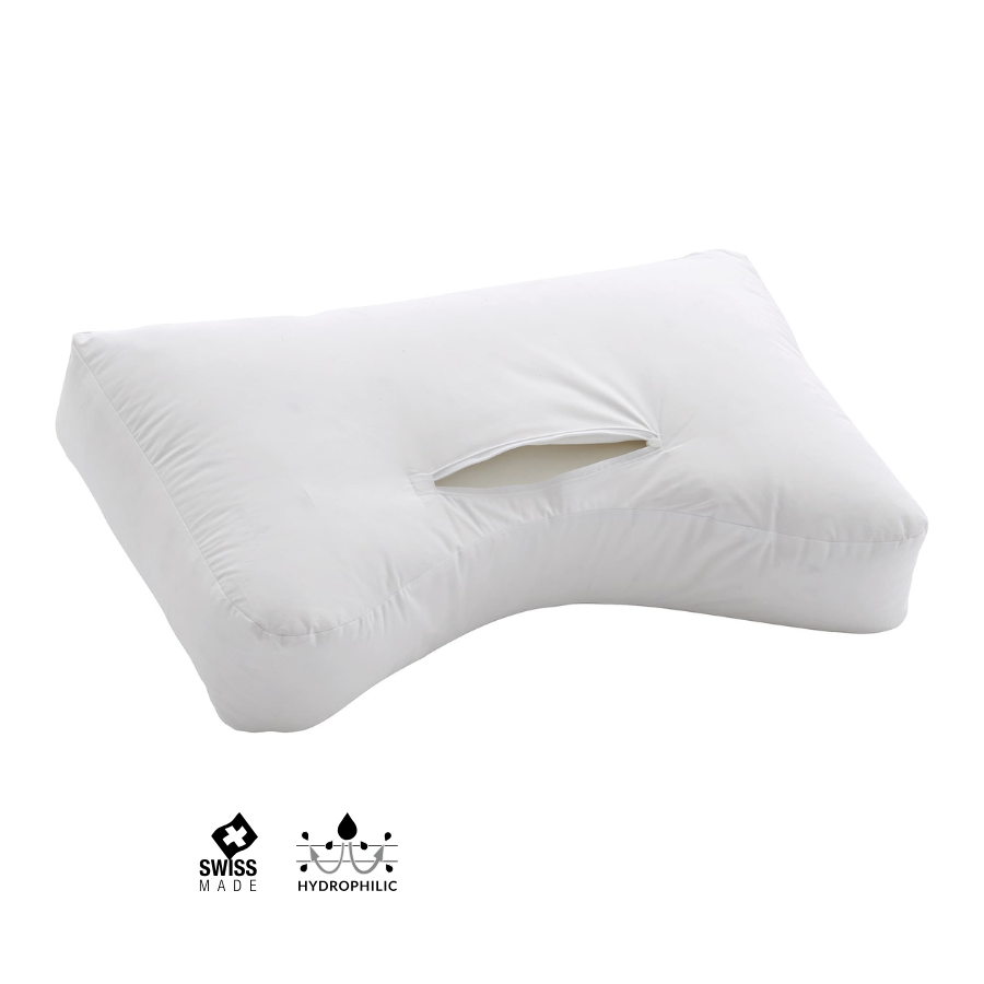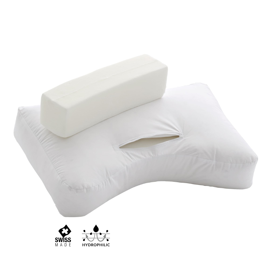 Ergonomisch geformtes Kissen mit Nackenstützfunktion. Flachere Variante - ist innen weniger stark gefüllt.