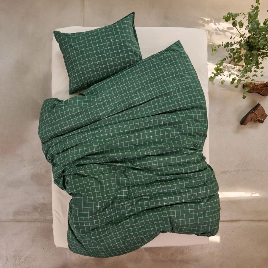 Zeitlos und doch modern erscheint das Karodesign Vito. Die Bettwäsche in sattem dunkelgrün strahlt Ruhe aus und fügt sich harmonisch in die Umgebung ein. Vito besteht zu 100% aus Bio-Baumwolle und ist GOTS und bioRe® zertifiziert.