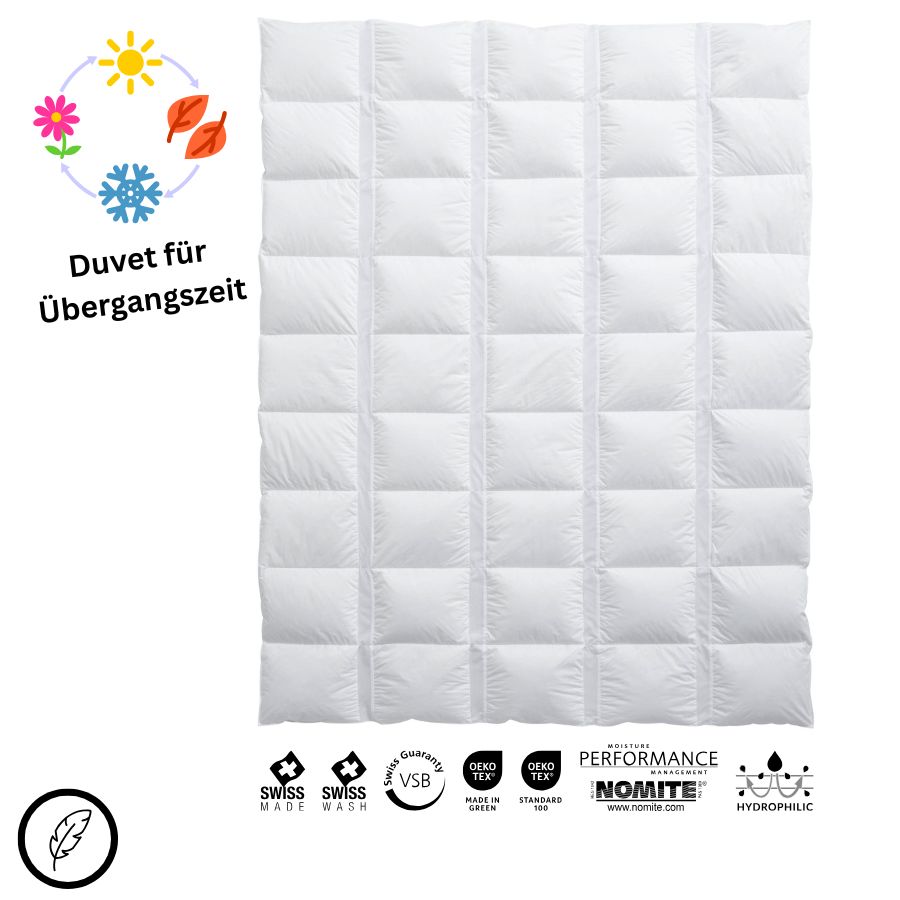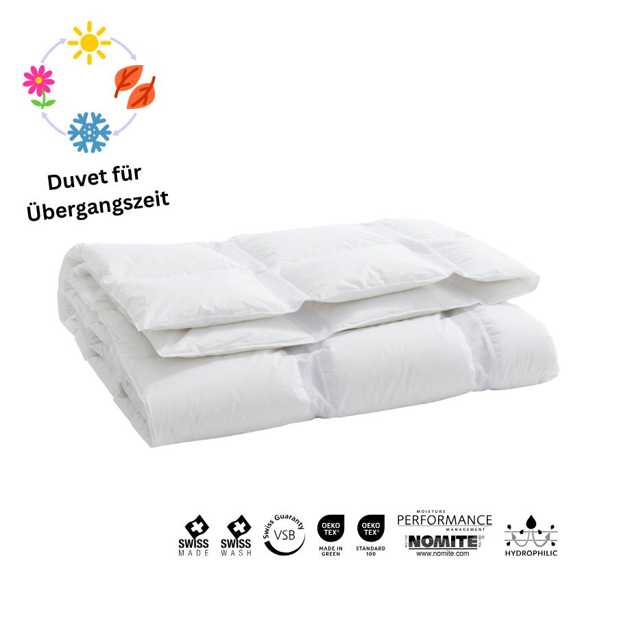 Empfehlung: Leichtes Daunen-Duvet mit natürlichem Klimasystem für die Übergangszeit oder Personen mit einem geringem Wärmebedürfnis