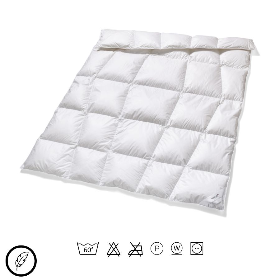 Füllung: Weisse, neue reine europäische Gänsedaunen, Klasse 1, 100% Daunen, extra grossflockig. Stoff: 50% Baumwolle, 50% Viscose/Micro-Modal