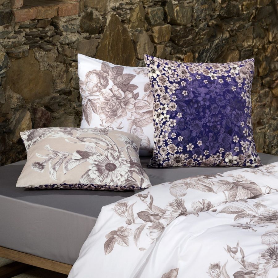 Zierkissenbezug der Marke CHRISTIAN FISCHBACHER. Übergrosse Blumen, Beeren und Sträucher ranken über dieses Design und lassen den Betrachter eintauchen in eine filigrane, detailverliebte Welt, die eine unvergleichliche Tiefe ausstrahlt. Wer sich auf die Nähe einlässt, erkennt neue Dimensionen und monochromer Farbigkeit in Sepia-Tönen und edlen Blautönen. GRANDEZZA steht für Eleganz mit einem Hauch Nostalgie.