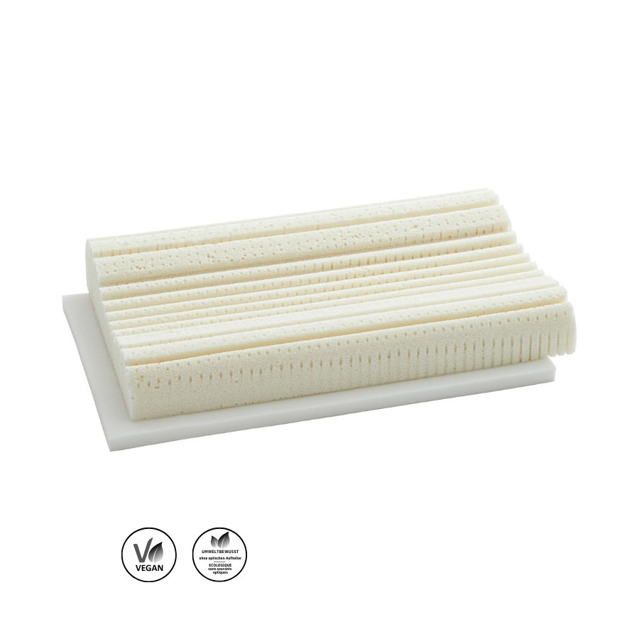 Kern: 100% Latex, Soft-Latex. Zusätzliche Schaumstoff-Einlage aus 100% Polyurethan.