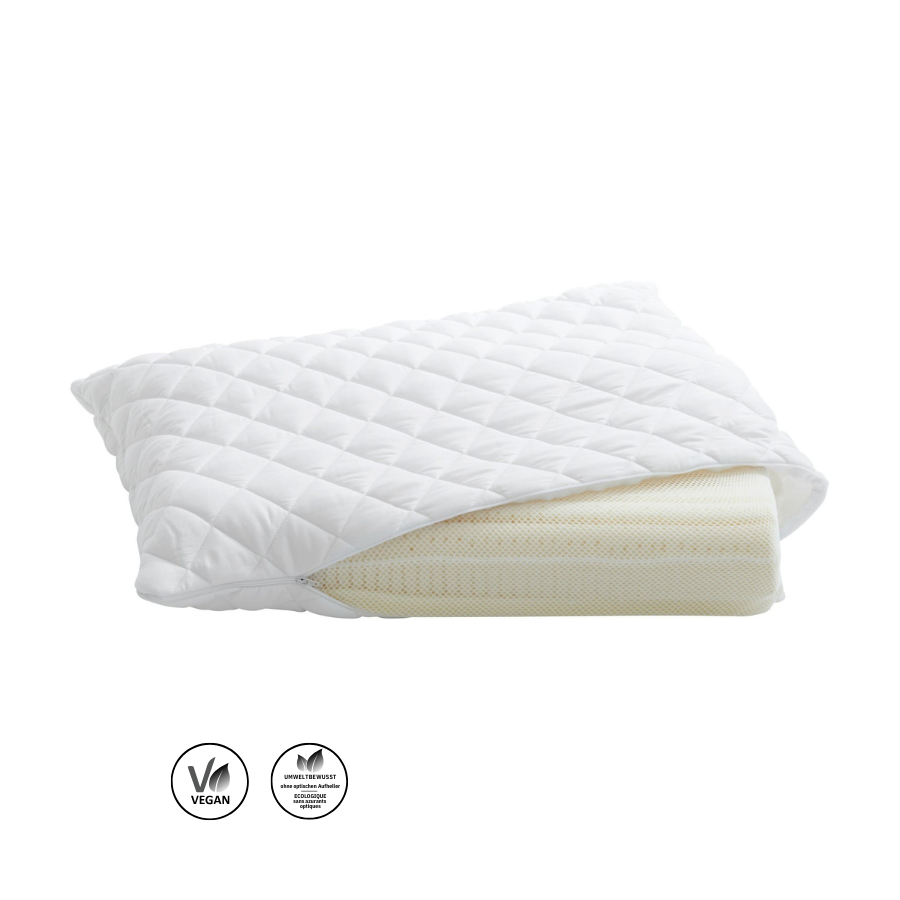 Für spürbar besseren Liegekomfort. Mit ergonomisch geformtem Kern mit verschieden hohen Wellen für normalen (niedrig) und stützenden (hoch) Gebrauch. Individuelle Höhenanpassung durch herausnehmbare Schaumstoff-Einlage. Atmungsaktiv