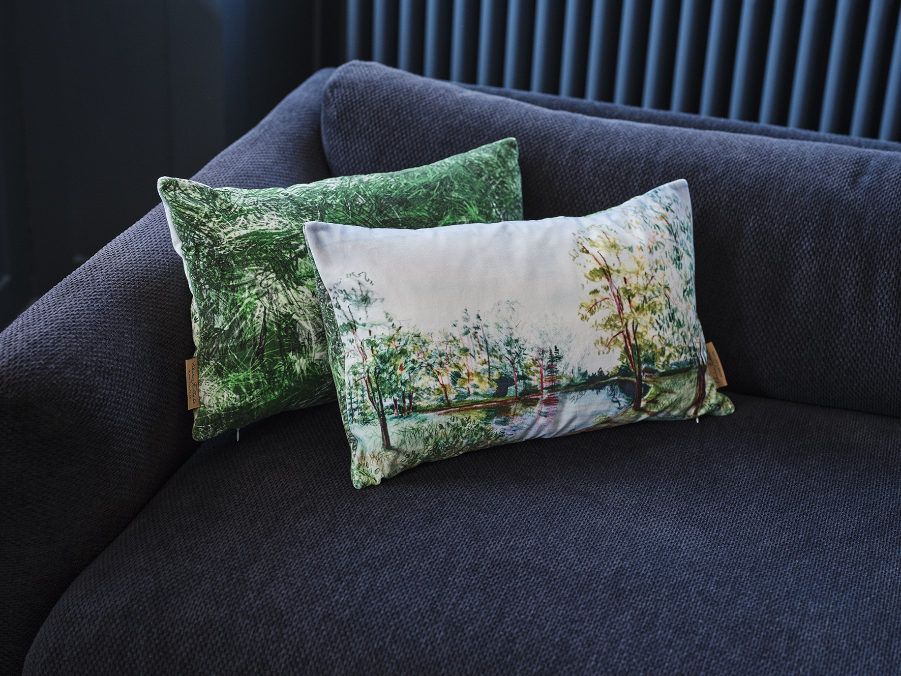 Double-Face bedruckt. Der Bezug ist mit Reissverschluss konfektioniert.