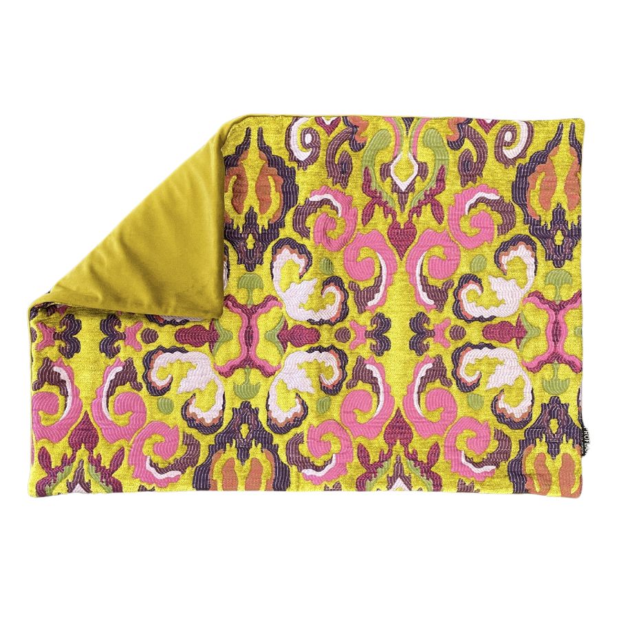 Zierkissenbezug mit zwei unterschiedlichen Seiten. Die Vorderseite mit gemustertem Stoff, die Rückseite in Uni.